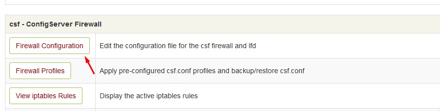 From Command line you can edit csf configuration file /etc/csf/csf.conf